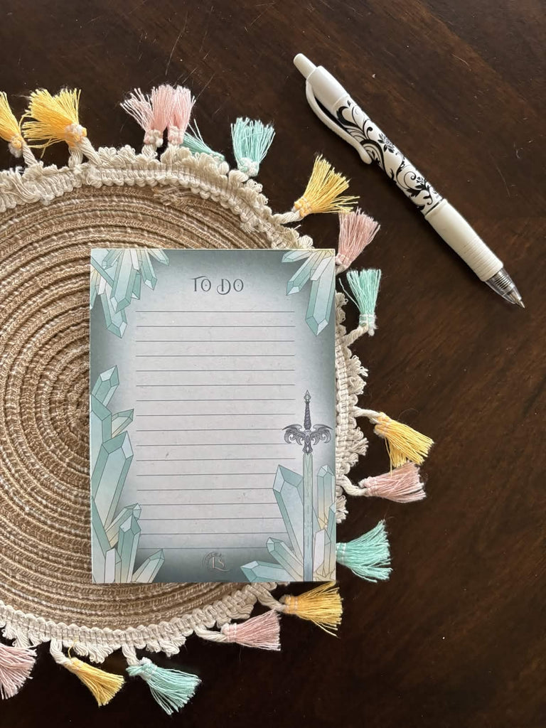 Blades of the Goddess-themed notepads. Available in two designs - a magical, crystal light blade theme, and an adorable Jitsu theme!